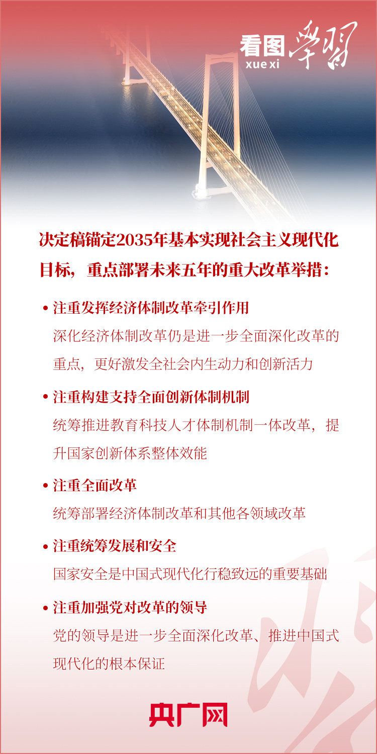 從征求和確定全會議題到起草文件、深入調(diào)查研究、廣泛征求意見、開展專題論證、反復(fù)討論修改,習(xí)近平總書記指出,決定稿錨定2035年基本實(shí)現(xiàn)社會主義現(xiàn)代化目標(biāo),重點(diǎn)部署未來五年的重大改革舉措?!拔鍌€(gè)注重”成為《決定》內(nèi)容擺布鮮明特點(diǎn)。一起來學(xué)習(xí)!