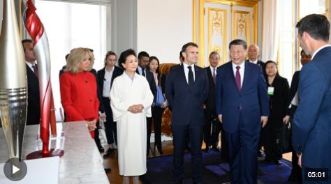 兩個多月前,國家主席習(xí)近平在巴黎愛麗舍宮同法國總統(tǒng)馬克龍舉行會談。會談前,兩國元首夫婦互贈禮品。習(xí)近平主席贈送給馬克龍總統(tǒng)的是北京雙奧火炬,馬克龍總統(tǒng)則以巴黎奧運火炬回贈。習(xí)近平主席說:“法國是一個體育強國,我衷心祝愿巴黎奧運會取得成功。中方將派出高水平代表團赴法參賽。”