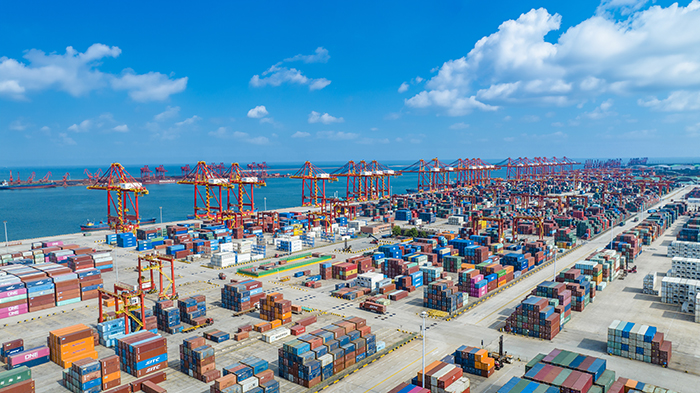 向海圖強,我國海運連接度全球領(lǐng)先,港口貨物吞吐量、港口集裝箱吞吐量等指標穩(wěn)居世界第一?!敖z路海運”聯(lián)通全球43個國家100多個港口。2023年,中國外貿(mào)海運量全球占比超三成。