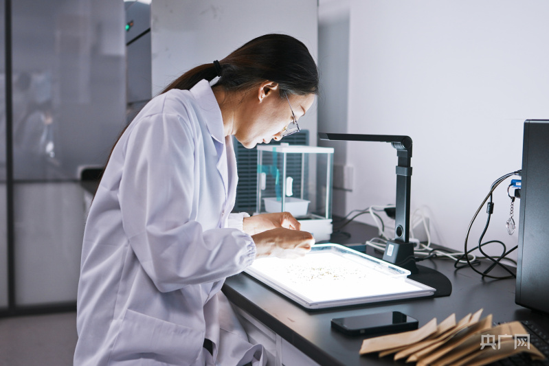 科研人員在實驗室進(jìn)行考種工作(央廣網(wǎng)記者 張羲輪 攝)