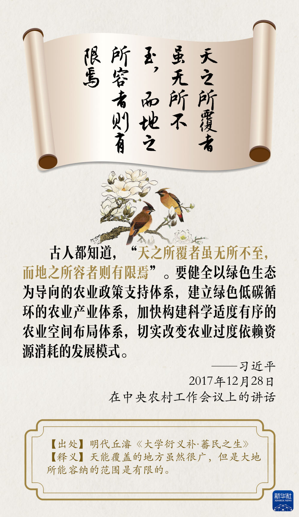 中華民族向來尊重自然、熱愛自然,綿延5000多年的中華文明孕育著豐富的生態(tài)文化。習(xí)近平總書記曾多次引用古語典故闡述生態(tài)文明,讓我們一起品讀,領(lǐng)悟其中的深刻警示和啟迪。