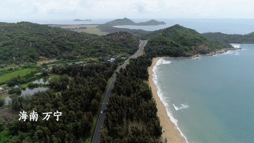 海南島東南角,驅(qū)車從萬寧小海到石梅灣,約40公里的濱海風(fēng)光一覽無余。清退養(yǎng)殖池塘,補(bǔ)種生態(tài)林木,曾經(jīng)臟亂破敗的岸灘,如今成了當(dāng)?shù)刈蠲篮0毒€。