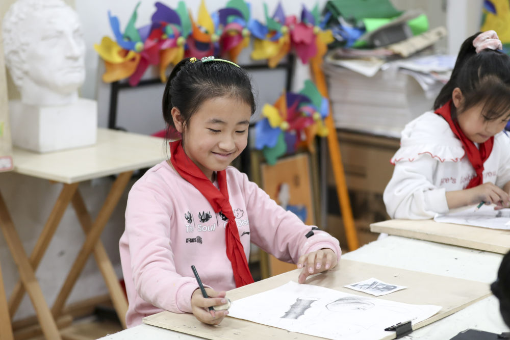 2021年10月27日,學(xué)生在黑龍江省哈爾濱市榆樹鎮(zhèn)中心校新鄉(xiāng)小學(xué)鄉(xiāng)村學(xué)校少年宮參加美術(shù)學(xué)習(xí)班。近年來(lái),黑龍江省各地以鄉(xiāng)村小學(xué)為基礎(chǔ),大力發(fā)展鄉(xiāng)村學(xué)校少年宮,開設(shè)德育、文藝、體育、科普、手工等多種課外活動(dòng),滿足學(xué)生需求,培養(yǎng)孩子們的興趣愛好和特長(zhǎng)。