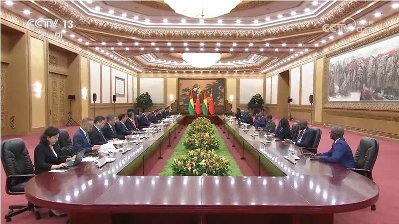 9月5日晚,國家主席習(xí)近平在北京人民大會堂會見來華出席中非合作論壇北京峰會的幾內(nèi)亞比紹總統(tǒng)恩巴洛。