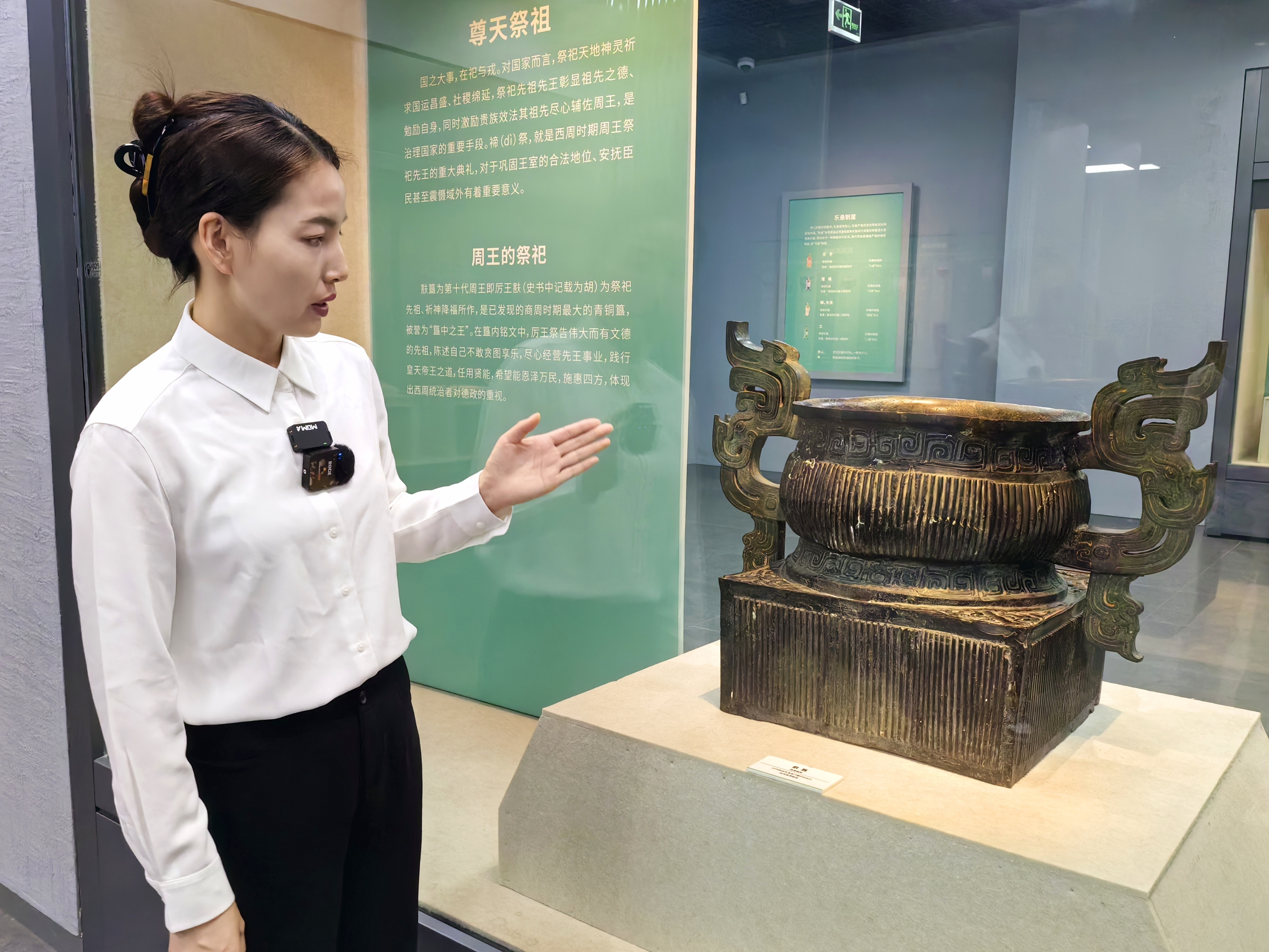 9月10日下午,習(xí)近平總書(shū)記來(lái)到陜西寶雞青銅器博物院考察,走進(jìn)展廳聽(tīng)取當(dāng)?shù)刂芮貢r(shí)期歷史文化介紹,仔細(xì)察看何尊、逨盤(pán)等珍貴青銅器,了解加強(qiáng)文物保護(hù)研究利用等情況。
