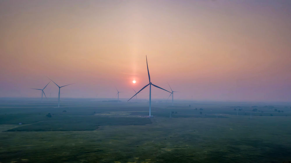科爾沁大草原上,牛羊健碩。藍(lán)天白云下,一排排巨型“風(fēng)車”緩緩旋轉(zhuǎn),在古老草原上勾勒出現(xiàn)代的“天際線”。這里是內(nèi)蒙古通遼市238萬(wàn)千瓦風(fēng)電基地。