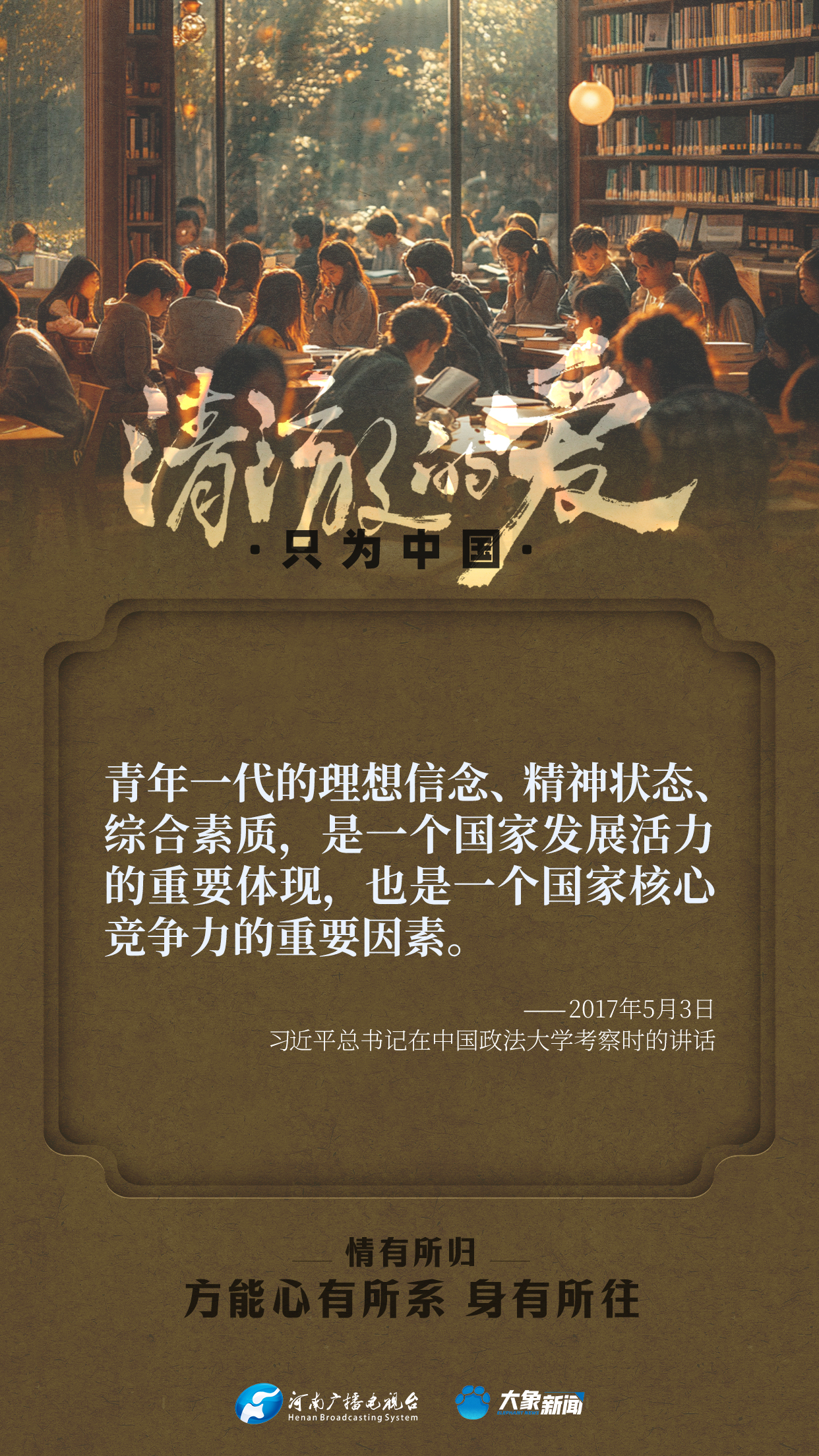 習(xí)近平總書(shū)記對(duì)廣大青年寄予厚望。黨的十八大以來(lái),他多次來(lái)到青年中間,同大家談人生、話理想,鼓勵(lì)青年人心系祖國(guó),志存高遠(yuǎn),腳踏實(shí)地,在奮斗中創(chuàng)造精彩人生,為祖國(guó)和人民貢獻(xiàn)青春和力量。
