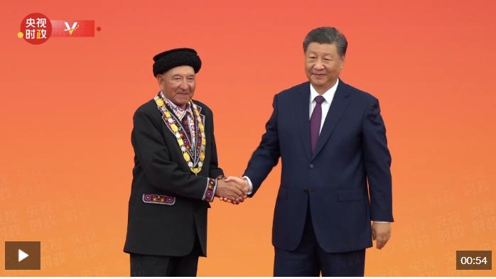 中華人民共和國國家勛章和國家榮譽稱號頒授儀式9月29日上午10時在人民大會堂隆重舉行。中共中央總書記、國家主席、中央軍委主席習近平向“人民衛(wèi)士”國家榮譽稱號獲得者巴依卡·凱力迪別克頒授獎章。