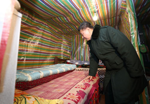 一天之內(nèi),橫跨兩省市,足跡覆蓋農(nóng)村、社區(qū)、學校等7處考察點,冒著嚴寒而往,沐著夜色而歸,只因“心里一直惦念著災(zāi)區(qū)的人民群眾”。
