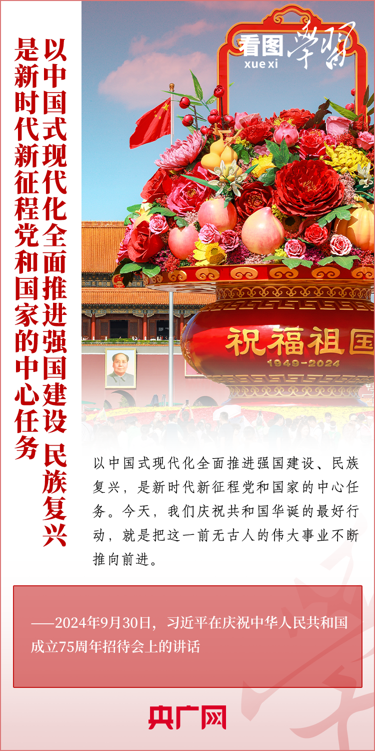 “經(jīng)過(guò)75年的艱苦奮斗,中國(guó)式現(xiàn)代化已經(jīng)展開壯美畫卷并呈現(xiàn)出無(wú)比光明燦爛的前景?!?月30日,慶祝中華人民共和國(guó)成立75周年招待會(huì)在京舉行。習(xí)近平總書記出席招待會(huì)并發(fā)表重要講話??倳洀?qiáng)調(diào),以中國(guó)式現(xiàn)代化全面推進(jìn)強(qiáng)國(guó)建設(shè)、民族復(fù)興,是新時(shí)代新征程黨和國(guó)家的中心任務(wù)。我們慶祝共和國(guó)華誕的最好行動(dòng),就是把這一前無(wú)古人的偉大事業(yè)不斷推向前進(jìn)。