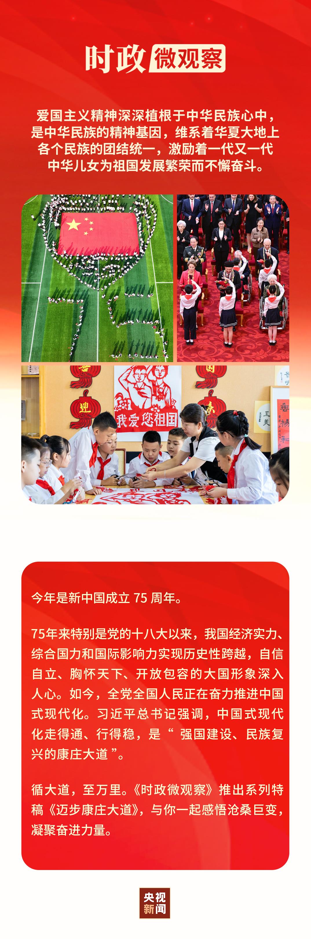 實現(xiàn)中華民族偉大復(fù)興的中國夢,是當(dāng)代中國愛國主義的鮮明主題。新征程上,我們要凝聚起心中的愛國情、強國志,勠力同心、開拓進取,共同譜寫人民共和國更加絢麗精彩的新篇章。