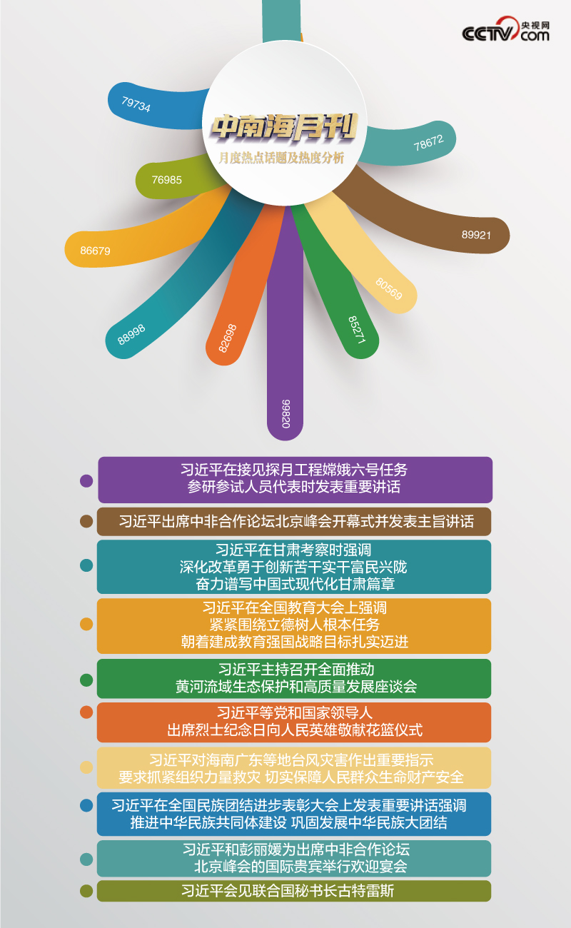 9月,中非深化團(tuán)結(jié)合作、攜手推進(jìn)現(xiàn)代化“雙向奔赴”,標(biāo)注下共筑人類(lèi)命運(yùn)共同體的“全球南方時(shí)刻”。在央視網(wǎng)“智聞”系統(tǒng)提取分析的9月全網(wǎng)時(shí)政新聞熱點(diǎn)中,處處體現(xiàn)著匯聚夢(mèng)想、激蕩信心的生動(dòng)局面。