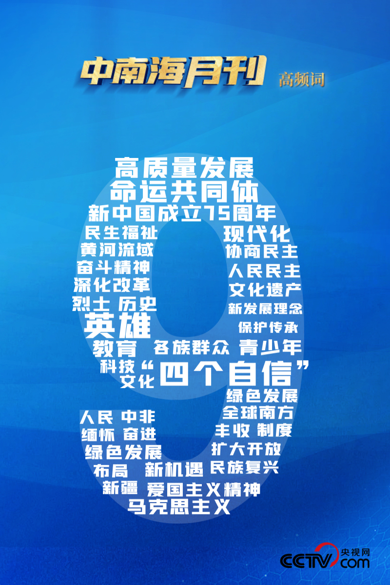 發(fā)展是解決中國(guó)所有問(wèn)題的關(guān)鍵,也是中國(guó)共產(chǎn)黨執(zhí)政興國(guó)的第一要?jiǎng)?wù)。央視網(wǎng)I學(xué)習(xí)數(shù)據(jù)庫(kù)梳理分析習(xí)近平總書(shū)記9月重要講話,“人民”“教育”“高質(zhì)量發(fā)展”“黃河流域”等高頻詞貫穿在總書(shū)記治國(guó)理政思想的脈絡(luò)中。