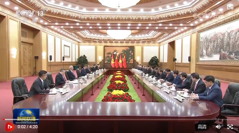 習近平指出,堅持共產(chǎn)黨領導和社會主義制度是中越兩國最本質(zhì)的特征,也是發(fā)展中越關系最堅實的政治基礎。中方將越南視為周邊外交的優(yōu)先方向,愿同越方一道,在深化高水平互利合作上走在前列,在維護國際公平正義上走在前列,在推動人類進步事業(yè)上走在前列,攜手構建具有戰(zhàn)略意義的中越命運共同體。