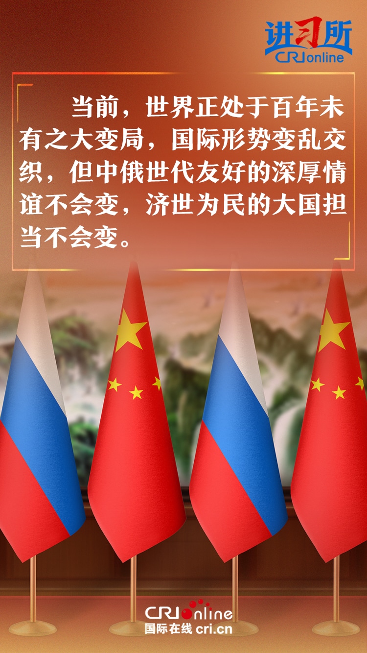 習(xí)近平主席在同俄羅斯總統(tǒng)普京會(huì)晤時(shí)指出,中俄世代友好的深厚情誼不會(huì)變,濟(jì)世為民的大國擔(dān)當(dāng)不會(huì)變。雙方要繼續(xù)推動(dòng)共建“一帶一路”倡議和歐亞經(jīng)濟(jì)聯(lián)盟深入對接,為促進(jìn)各自經(jīng)濟(jì)高質(zhì)量發(fā)展提供動(dòng)力支撐。