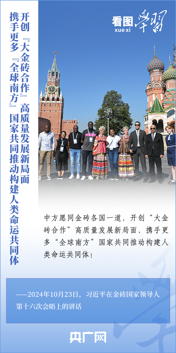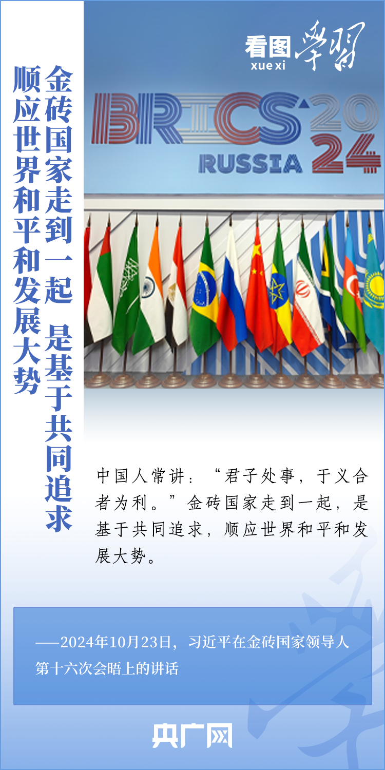 當?shù)貢r間10月23日,國家主席習近平在俄羅斯喀山出席金磚國家領導人第十六次會晤并發(fā)表重要講話。習主席深刻闡述推動“大金磚合作”高質(zhì)量發(fā)展的中國主張,就金磚大家庭發(fā)展合作提出五點務實舉措,表達了中方愿同金磚各國一道,攜手更多“全球南方”國家共同推動構建人類命運共同體的真誠愿望。一起來學習!