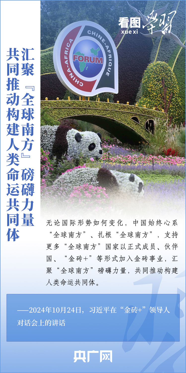 “‘全球南方’群體性崛起,是世界大變局的鮮明標(biāo)志。”當(dāng)?shù)貢r(shí)間10月24日,國(guó)家主席習(xí)近平在俄羅斯喀山出席“金磚+”領(lǐng)導(dǎo)人對(duì)話會(huì)并發(fā)表重要講話。習(xí)主席深刻闡述了“全球南方”群體性崛起的重要意義,圍繞和平、發(fā)展、文明提出三方面務(wù)實(shí)舉措,呼吁與會(huì)“金磚+”領(lǐng)導(dǎo)人展現(xiàn)集體智慧和力量,匯聚“全球南方”磅礴力量,共同推動(dòng)構(gòu)建人類(lèi)命運(yùn)共同體。一起來(lái)學(xué)習(xí)!