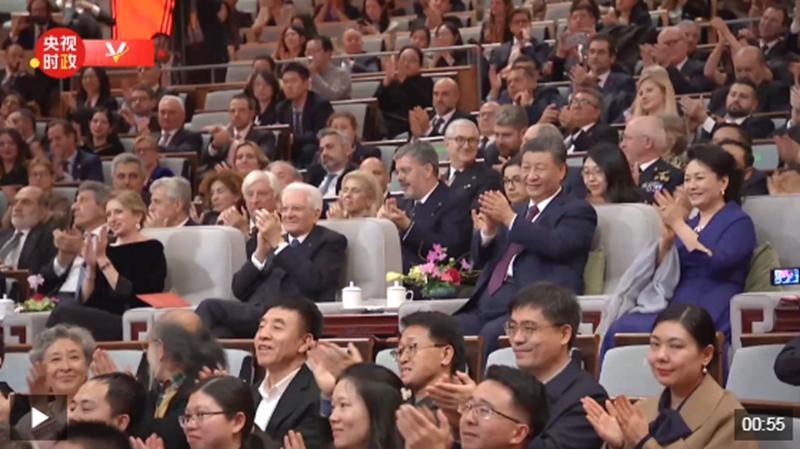 11月8日晚,國家主席習(xí)近平和夫人彭麗媛在北京國家大劇院同意大利總統(tǒng)馬塔雷拉和女兒勞拉一同觀看“奇妙的和諧”——普契尼音樂會。
