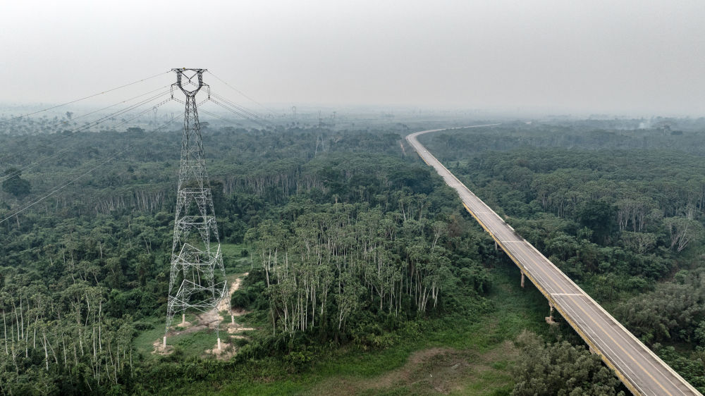 這張9月13日拍攝的照片顯示,在巴西朗多尼亞州,EDP輸變電項(xiàng)目線(xiàn)路穿越熱帶雨林(無(wú)人機(jī)照片)。巴西EDP輸變電項(xiàng)目是位于巴西北部的阿克里州和朗多尼亞州的綠地輸變電工程,山東電建一公司承擔(dān)了該項(xiàng)目的EPC總承包任務(wù)。新華社記者王天聰攝
