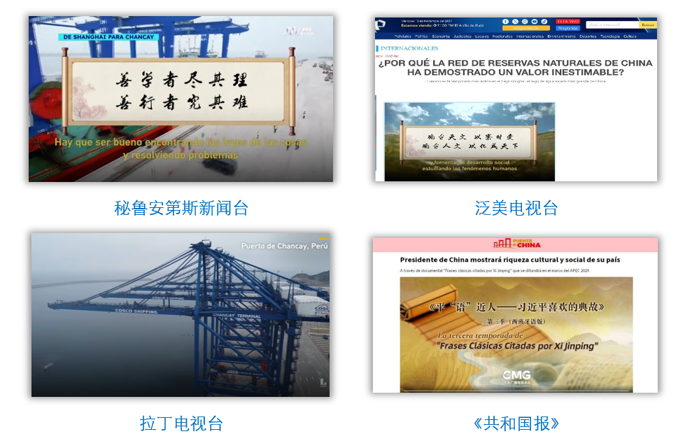 在中國(guó)國(guó)家主席習(xí)近平應(yīng)秘魯共和國(guó)總統(tǒng)博魯阿爾特邀請(qǐng),赴利馬出席亞太經(jīng)合組織第三十一次領(lǐng)導(dǎo)人非正式會(huì)議并對(duì)秘魯進(jìn)行國(guó)事訪問之際,由中國(guó)中央廣播電視總臺(tái)制作的《平“語(yǔ)”近人——習(xí)近平喜歡的典故》第三季(西班牙語(yǔ)版),將于當(dāng)?shù)貢r(shí)間11月14日起在秘魯國(guó)家廣播電視臺(tái)、秘魯電視聯(lián)播網(wǎng)、秘魯廣播節(jié)目集團(tuán)電視端等多平臺(tái)落地播出。當(dāng)?shù)囟嗉抑髁髅襟w對(duì)節(jié)目落播進(jìn)行預(yù)告,引發(fā)秘魯各界普遍期待和廣泛關(guān)注。