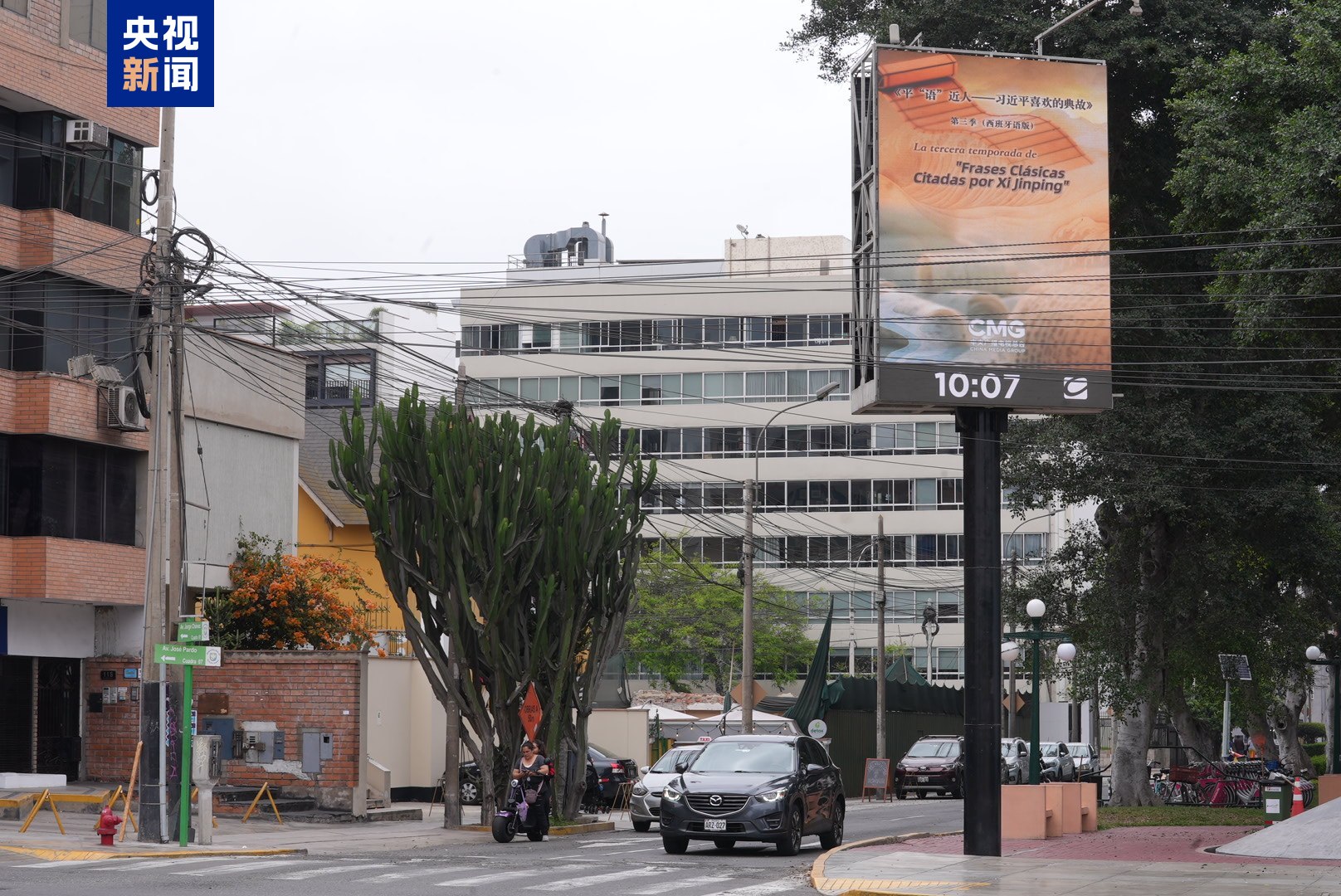 11月14日起,《平“語(yǔ)”近人——習(xí)近平喜歡的典故》第三季(西班牙語(yǔ)版)宣傳片在利馬地標(biāo)建筑戶外大屏、利馬國(guó)際機(jī)場(chǎng)至市中心沿路戶外大屏滾動(dòng)播放。秘魯各界人士對(duì)節(jié)目落地播出表示期待,認(rèn)為這將為秘魯民眾了解中國(guó)領(lǐng)導(dǎo)人治國(guó)理政思想、領(lǐng)略中國(guó)式現(xiàn)代化的壯美宏闊打開思想之窗。