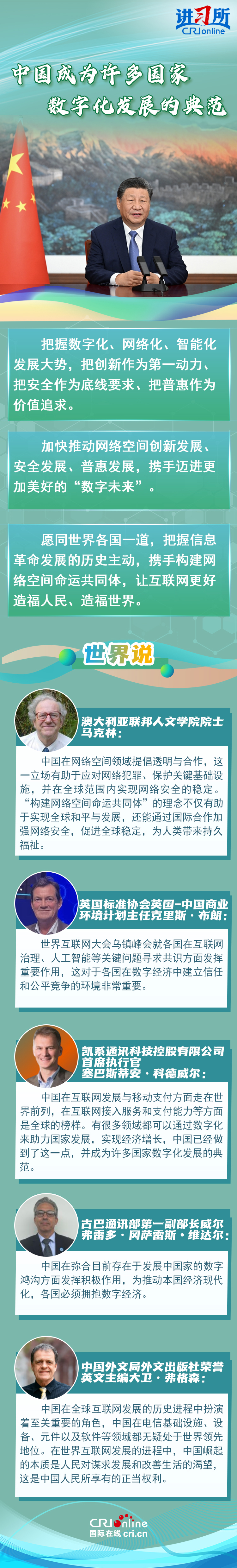 多國人士表示,中國在全球互聯(lián)網(wǎng)發(fā)展的歷史進程中扮演著至關重要的角色,“構(gòu)建網(wǎng)絡空間命運共同體”的理念不僅有助于實現(xiàn)全球和平與發(fā)展,還能為人類帶來持久福祉。