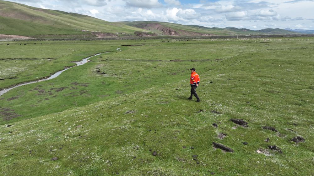 9月24日,生態(tài)管護(hù)員那瓦才郎在草場(chǎng)上巡護(hù)。(受訪(fǎng)者供圖)