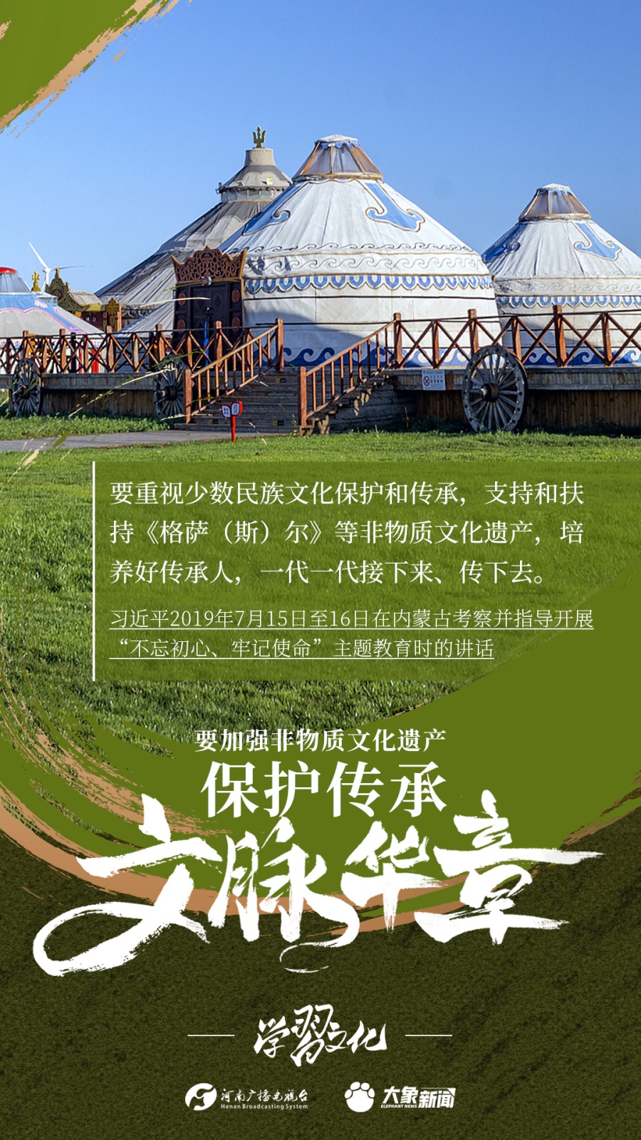 非物質(zhì)文化遺產(chǎn)是中華優(yōu)秀傳統(tǒng)文化的重要組成部分,是中華文明綿延傳承的生動見證,是我國各族人民寶貴的精神財富。習(xí)近平總書記十分關(guān)心非物質(zhì)文化遺產(chǎn)的保護(hù)傳承,多次強(qiáng)調(diào)“要扎實做好非物質(zhì)文化遺產(chǎn)的系統(tǒng)性保護(hù)”“培養(yǎng)好傳承人”等。大象新聞為您梳理,邀您一起學(xué)習(xí)、領(lǐng)悟、踐行。