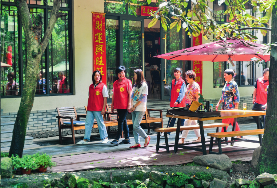 走進(jìn)白沙村,只見柏油馬路邊是排列齊整的黃色小洋樓,家家戶戶門口都有綠植點(diǎn)綴,村里建起健身廣場(chǎng)、籃球場(chǎng)、游泳池、羽毛球場(chǎng)等大型運(yùn)動(dòng)場(chǎng)所。2024年春節(jié),村里組織第三次拍攝全村福,上千村民齊聚在一起,用鏡頭定格幸福笑容。