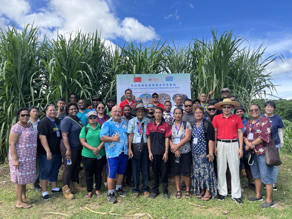2024年2月28日,來自巴布亞新幾內亞、湯加、庫克群島、薩摩亞、瑙魯?shù)葒业摹疤窖髰u國菌草技術培訓班”學員在斐濟布拉阿格魯菌草技術示范基地合影。新華社發(fā)(中國援斐濟菌草技術示范中心供圖)