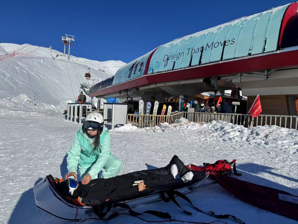 一次巡邏時,帕提曼看到一名雪友橫躺在雪道中間,雪板被甩出很遠,上前查看后發(fā)現(xiàn)其大腿骨折。她立即進行夾板固定、紗布包扎等操作,隨后協(xié)助轉運傷員。