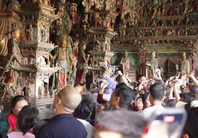 游客在山西隰縣小西天景區(qū)參觀。