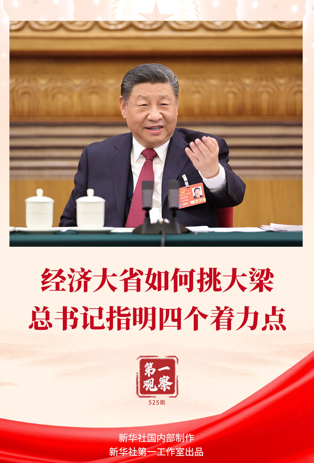 3月5日下午,習(xí)近平總書記在參加他所在的十四屆全國人大三次會(huì)議江蘇代表團(tuán)審議時(shí)強(qiáng)調(diào),經(jīng)濟(jì)大省要挑大梁為全國發(fā)展大局作貢獻(xiàn)。