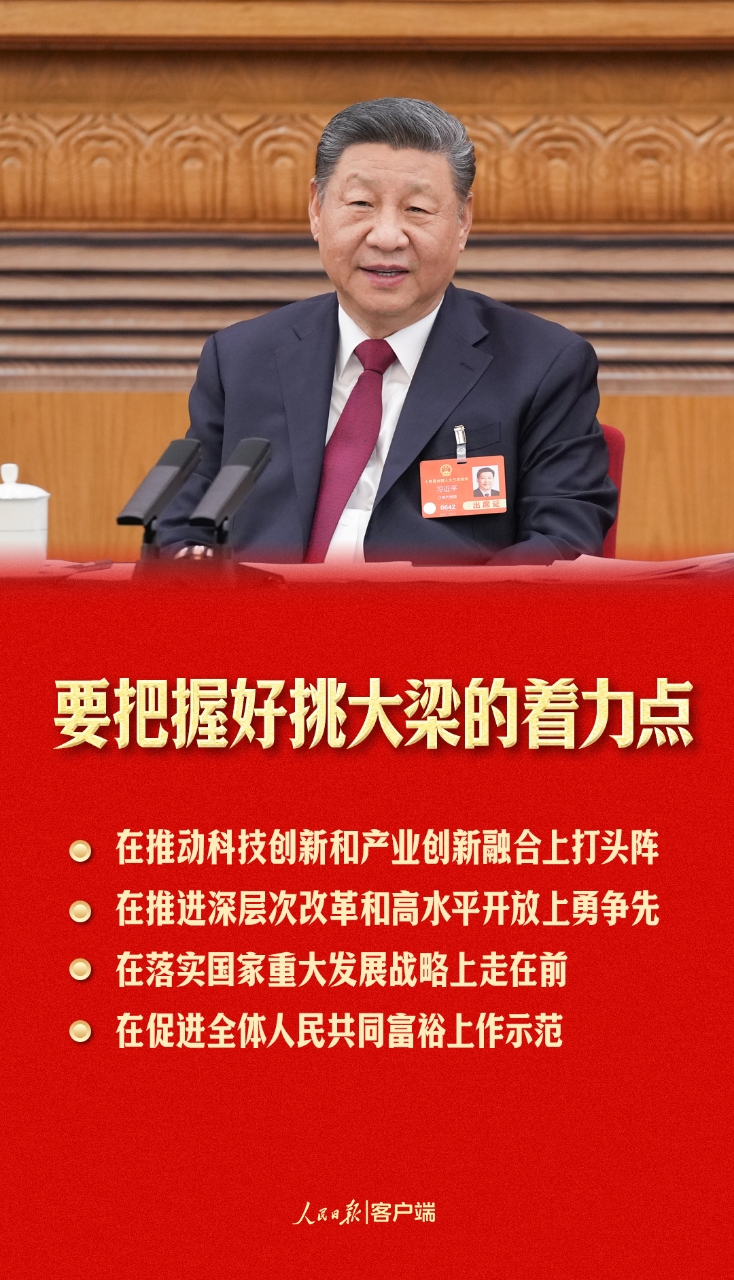 2023年1月,習近平總書記在江蘇當選第十四屆全國人大代表。連續(xù)三年到江蘇代表團參加審議,總書記都提到了“挑大梁”這個關(guān)鍵詞。