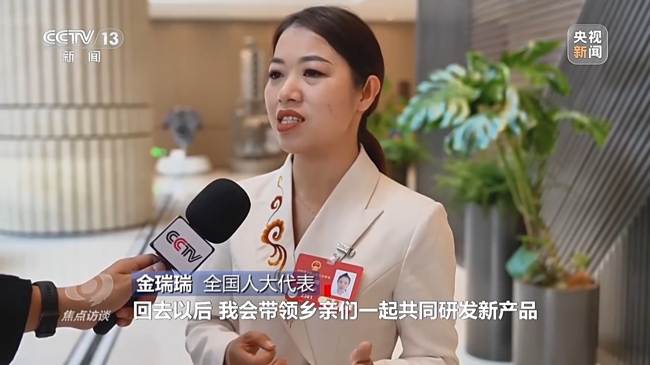 全國人大代表 金瑞瑞:方向和路徑都非常清晰,回去以后,我會帶領鄉(xiāng)親們一起共同研發(fā)新產(chǎn)品,把非遺手工的技藝傳承好和發(fā)揚好,帶著鄉(xiāng)親們共同賺錢,把全國兩會擘畫的美好愿景轉(zhuǎn)化為實實在在的成績和收獲。