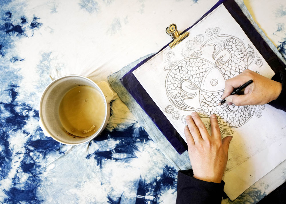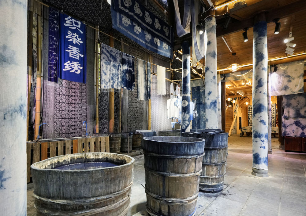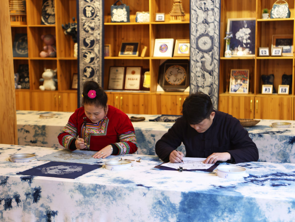 2025年3月14日,村民在肇興侗寨內(nèi)制作蠟染。近年來,當(dāng)?shù)丶哟髮ι贁?shù)民族非遺文創(chuàng)產(chǎn)品的研發(fā)和創(chuàng)新力度,同時進(jìn)一步加強線上銷售,通過微信、網(wǎng)上直播、網(wǎng)店等方式進(jìn)行帶貨,讓當(dāng)?shù)厝罕娡ㄟ^指尖增收致富。