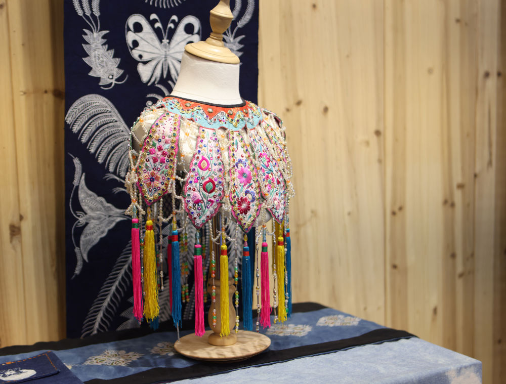 2021年9月27日,貴州省鎮(zhèn)遠(yuǎn)縣報京鄉(xiāng)報京村村民邰木香(右)在制作侗繡。邰木香將侗族的民間故事以刺繡形式展現(xiàn)出來,還先后開發(fā)出傳統(tǒng)與現(xiàn)代相結(jié)合的侗族服飾、工藝包、繡花鞋、圍腰、頭巾、枕巾等系列產(chǎn)品,深受國內(nèi)外客商的青睞,致富的同時帶動當(dāng)?shù)?00多名繡娘實現(xiàn)就業(yè)增收。