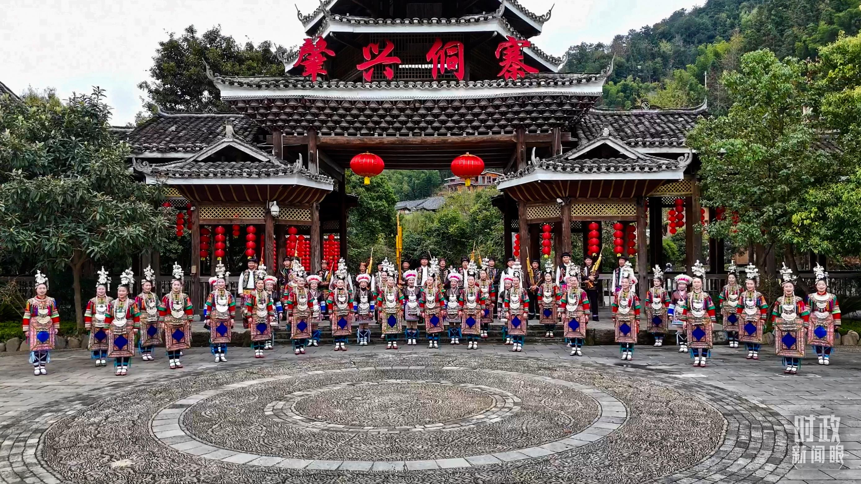 寨門(mén)處,鄉(xiāng)親們身著傳統(tǒng)服飾,唱起侗族大歌,歡迎遠(yuǎn)方的來(lái)客。(總臺(tái)央視記者范凱拍攝)