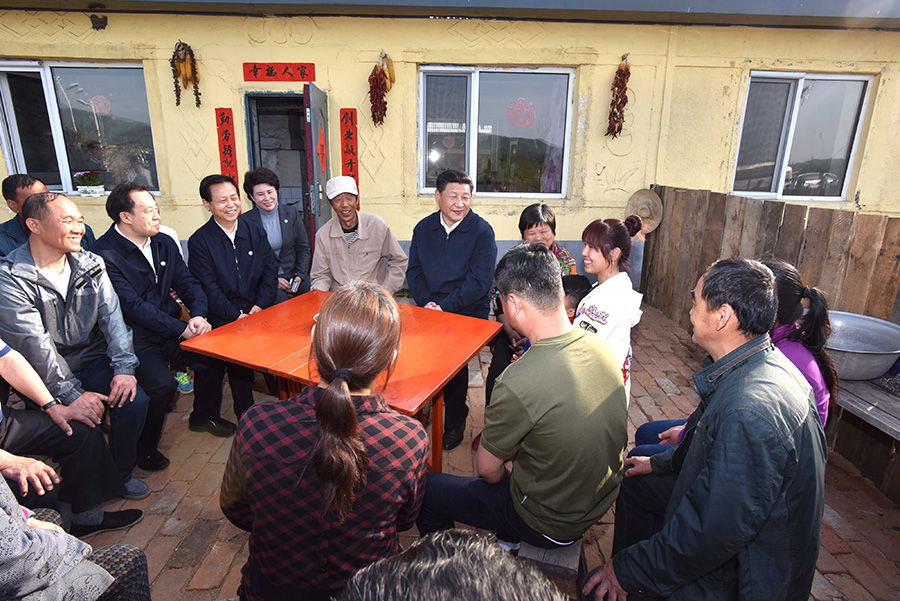 2016年5月23日,習(xí)近平在黑龍江伊春上甘嶺林業(yè)局溪水經(jīng)營所林場(chǎng)職工劉養(yǎng)順家,同一家人和鄰居們親切交談。新華社記者 李濤 攝