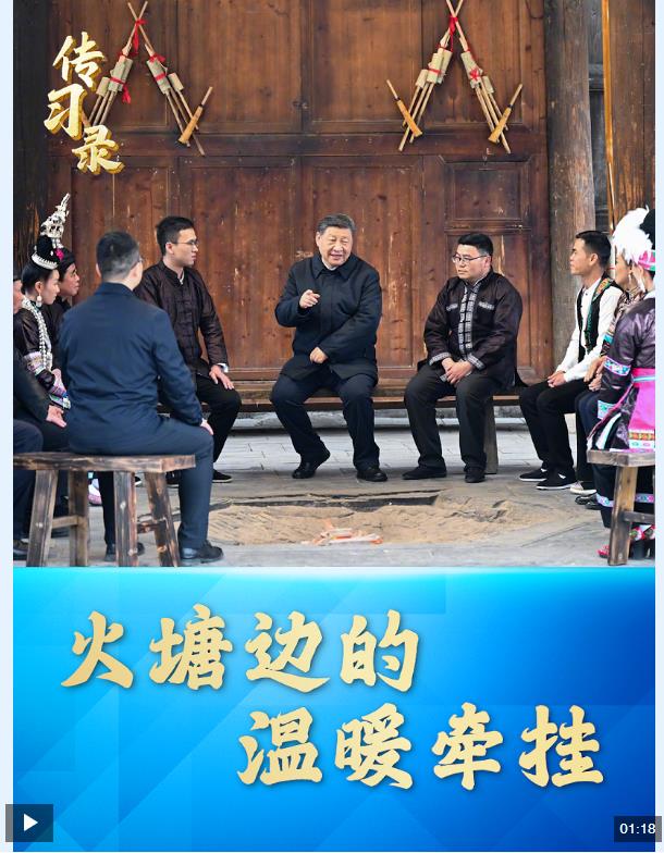 3月17日,習(xí)近平總書(shū)記來(lái)到貴州省黔東南州黎平縣肇興侗寨考察調(diào)研。信團(tuán)鼓樓內(nèi),一方火塘邊,總書(shū)記同村干部和村民代表圍坐一起,共話(huà)鄉(xiāng)村全面振興。