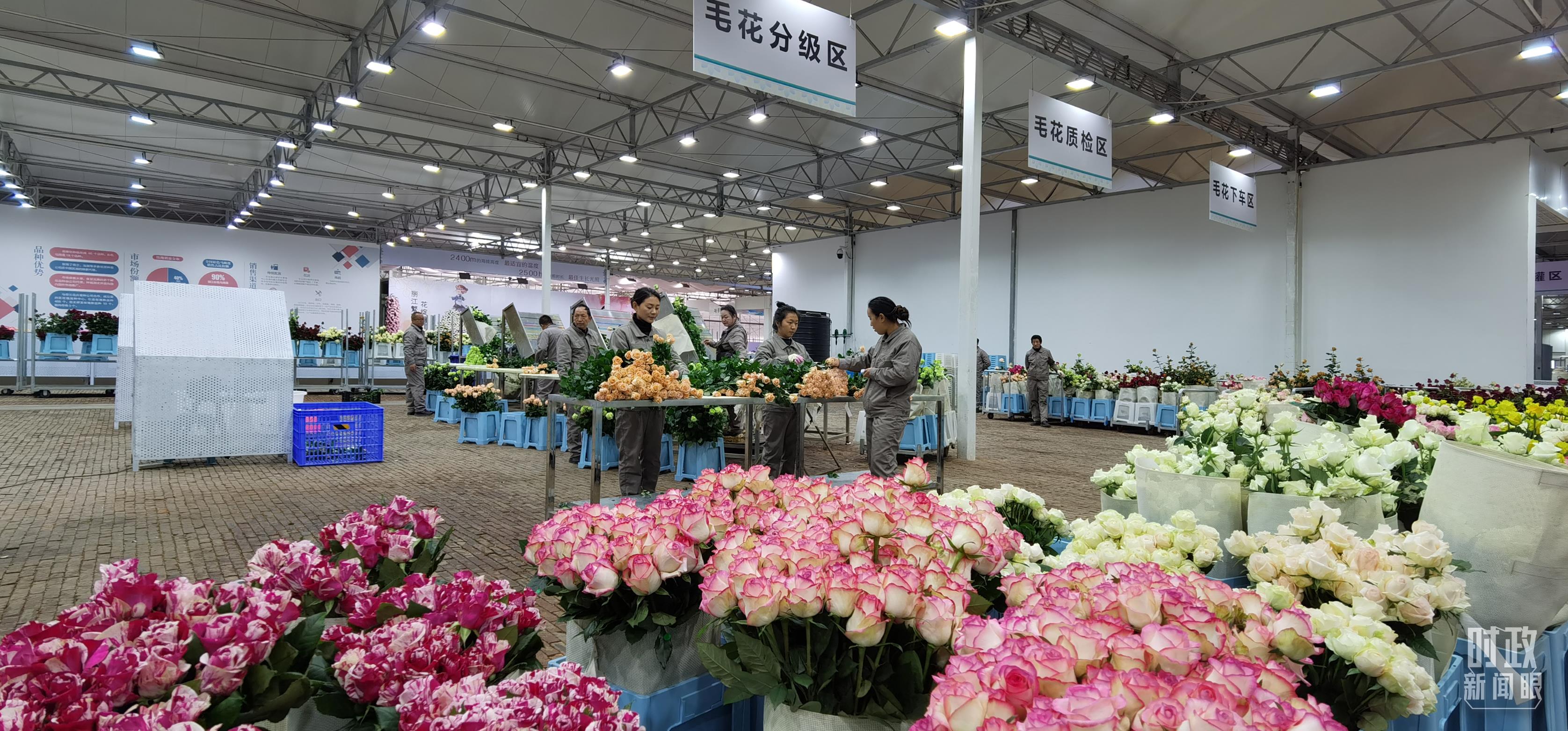 麗江現(xiàn)代花卉產業(yè)園內,工人正在分類整理鮮花。(總臺央視記者郭鴻拍攝)
