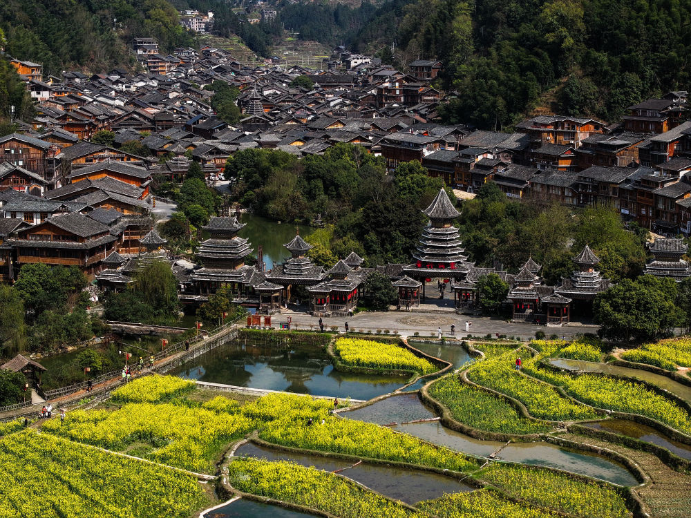 這是2025年3月18日拍攝的貴州省黎平縣肇興侗寨(無人機(jī)照片)。新華社記者 楊文斌 攝