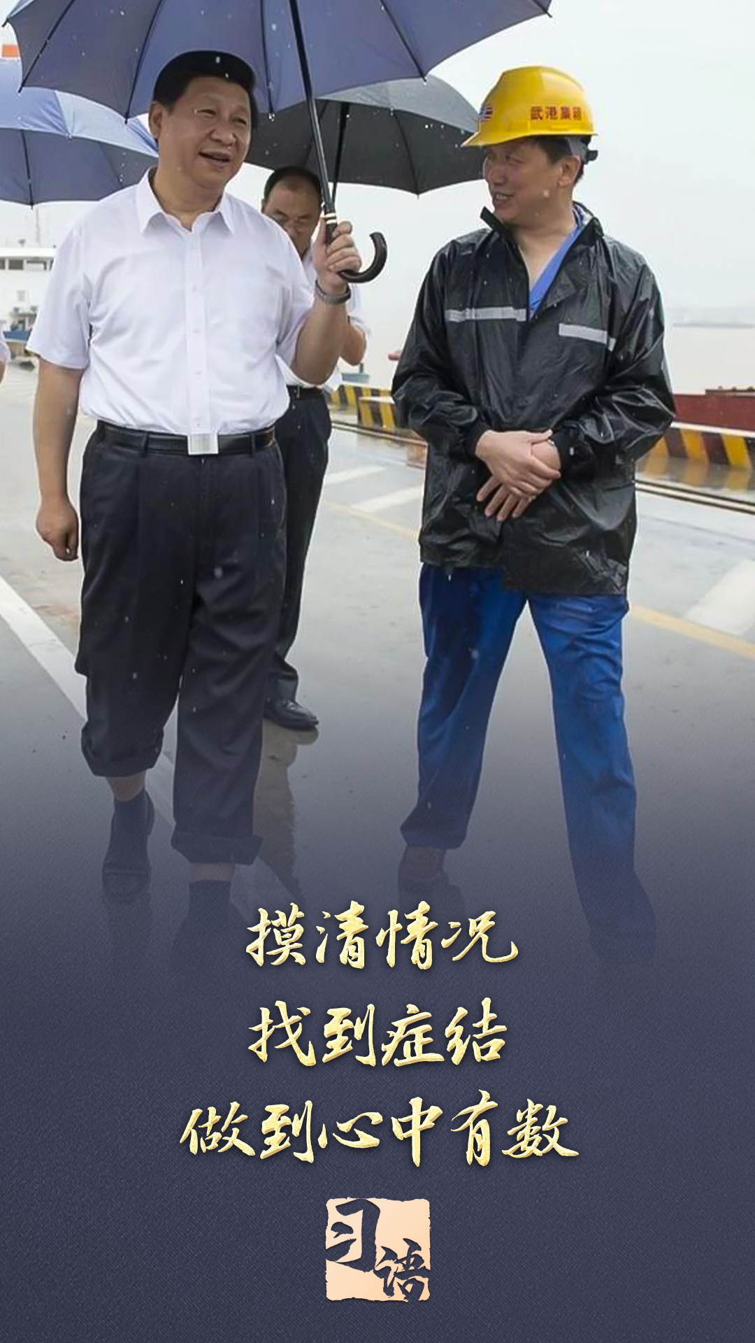 2013年7月,習(xí)近平總書記冒雨來(lái)到湖北武漢新港陽(yáng)邏集裝箱港區(qū)考察,他卷起褲腿,打著雨傘,蹚著積水邊走邊看邊問(wèn)。兩天后,在武漢主持召開(kāi)部分省市負(fù)責(zé)人座談會(huì)時(shí),習(xí)近平總書記強(qiáng)調(diào):“研究、思考、確定全面深化改革的思路和重大舉措,刻舟求劍不行,閉門造車不行,異想天開(kāi)更不行,必須進(jìn)行全面深入的調(diào)查研究?!?/p>