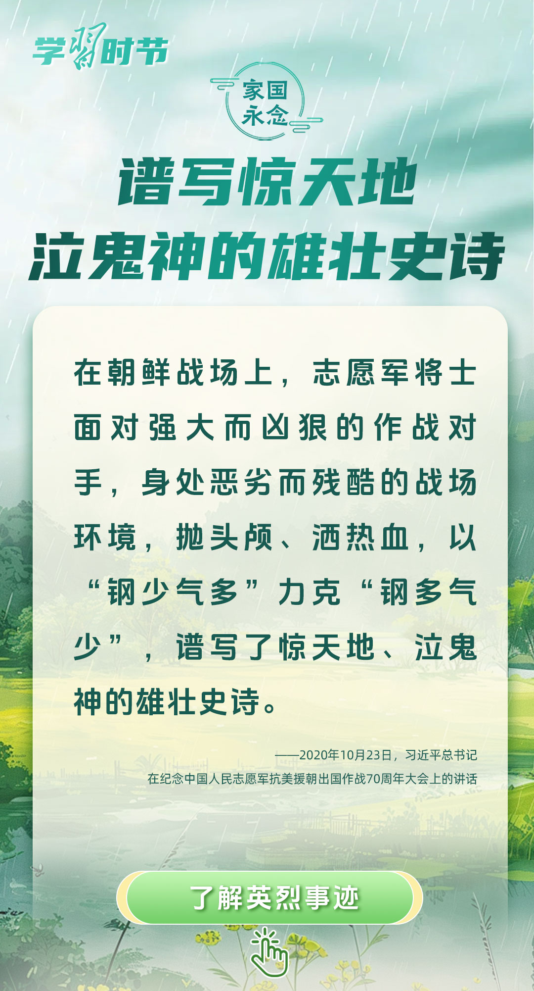 今年是中國(guó)人民抗日戰(zhàn)爭(zhēng)暨世界反法西斯戰(zhàn)爭(zhēng)勝利80周年、中國(guó)人民志愿軍抗美援朝出國(guó)作戰(zhàn)75周年。習(xí)近平總書(shū)記曾說(shuō):“對(duì)一切為國(guó)家、為民族、為和平付出寶貴生命的人們,不管時(shí)代怎樣變化,我們都要永遠(yuǎn)銘記他們的犧牲和奉獻(xiàn)?!苯裉煳覀兯鶕碛械囊磺?,無(wú)不凝結(jié)著英雄、英烈們的奉獻(xiàn)付出乃至巨大犧牲。