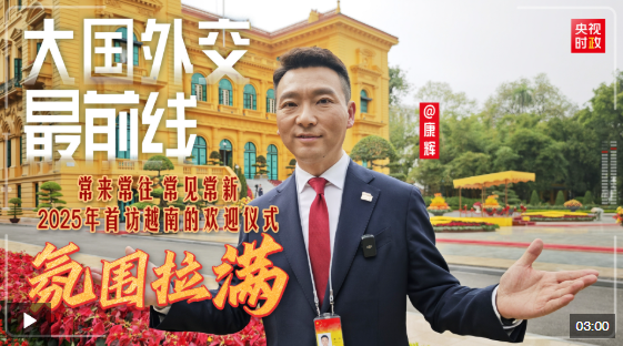 黃色的標(biāo)志性建筑,交相輝映的五星紅旗和金星紅旗,手持中越兩國國旗的小朋友……有沒有一種熟悉又親切的感覺?時隔一年多,習(xí)近平再次訪越,恰似走親戚、串門般自然??旄按髧饨蛔钋熬€”的腳步,一同前往歡迎儀式現(xiàn)場,感受這份熱烈與友好!