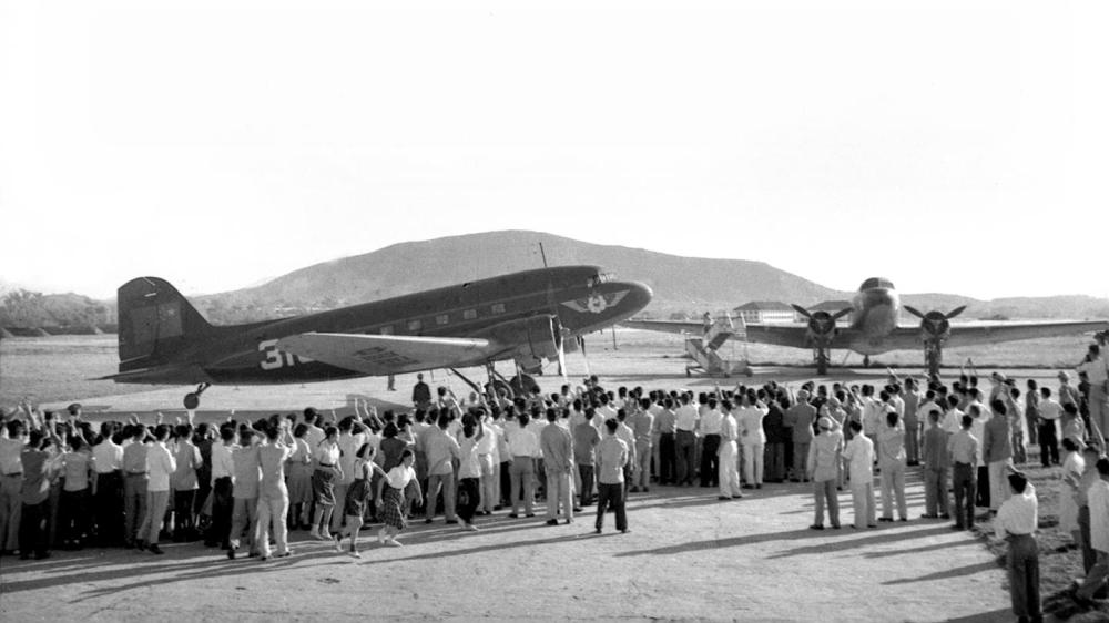 1956年4月24日,從中國(guó)廣州經(jīng)南寧至越南河內(nèi)的民用航線正式通航。這是首航飛機(jī)準(zhǔn)備起飛。