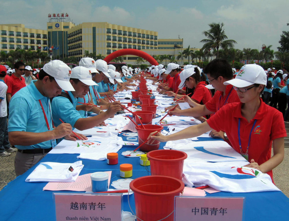 2010年8月27日,中越青年在廣西北海市海濱公園參加“用友誼共繪美好未來(lái)”中越千名青年大型彩繪活動(dòng)。