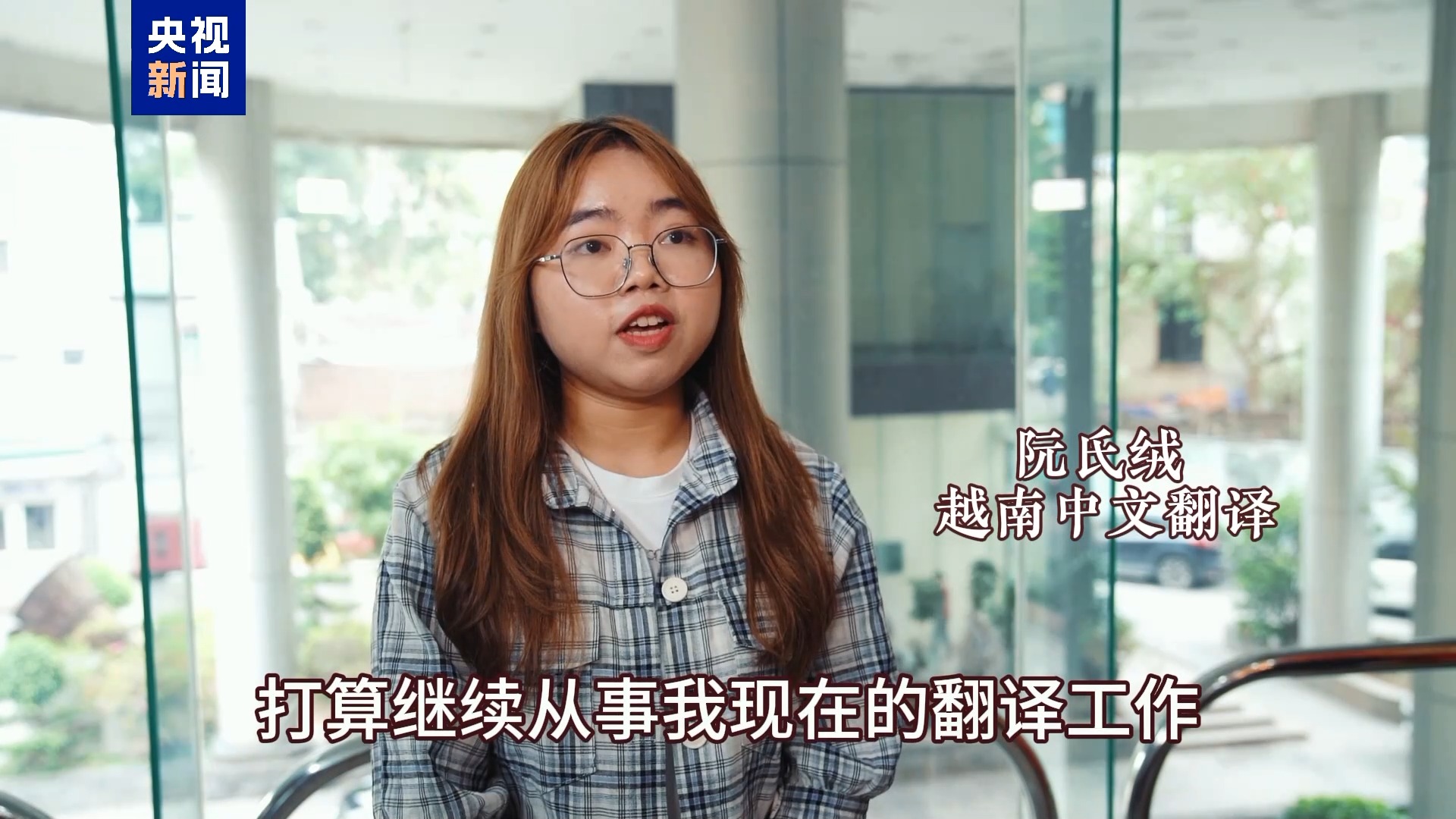阮氏絨 越南中文翻譯:打算繼續(xù)從事我現(xiàn)在的翻譯工作,因為我覺得翻譯不僅是語言的工作,更多的是文化,兩個之間的文化交流。