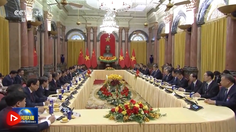 習近平強調(diào),中越雙方要以中越友好合作的穩(wěn)定性和社會主義制度的優(yōu)越性應(yīng)對外部形勢的不確定性,推動中越命運共同體航船沿著正確航道破浪前行。政治上要把住前行之舵,保持高層戰(zhàn)略溝通,加強治黨治國經(jīng)驗互學互鑒,共同提高黨的領(lǐng)導能力,攜手走穩(wěn)走好各自社會主義道路。安全上要鑄牢團結(jié)之錨,以兩國外交、國防、公安“3+3”戰(zhàn)略對話機制升格為契機,持續(xù)深化防務(wù)和執(zhí)法安全合作,中方支持越方籌備好越共十四大,支持越方維護國家主權(quán)、安全、發(fā)展利益。經(jīng)濟上要執(zhí)穩(wěn)合作之楫,加強發(fā)展戰(zhàn)略對接,落實好共建“一帶一路”倡議和“兩廊一圈”框架對接合作規(guī)劃,深化鐵路、公路、航空多維互聯(lián)互通,保障產(chǎn)業(yè)鏈供應(yīng)鏈穩(wěn)定暢通,拓展5G、人工智能、綠色發(fā)展等新興領(lǐng)域合作,以新質(zhì)生產(chǎn)力賦能兩國全方位合作格局。人文上要揚起友誼之帆,辦好今年“中越人文交流年”系列活動,實施更多“小而美”民生項目,通過文化、旅游、媒體、地方等交流,讓中越友好更加深入人心。