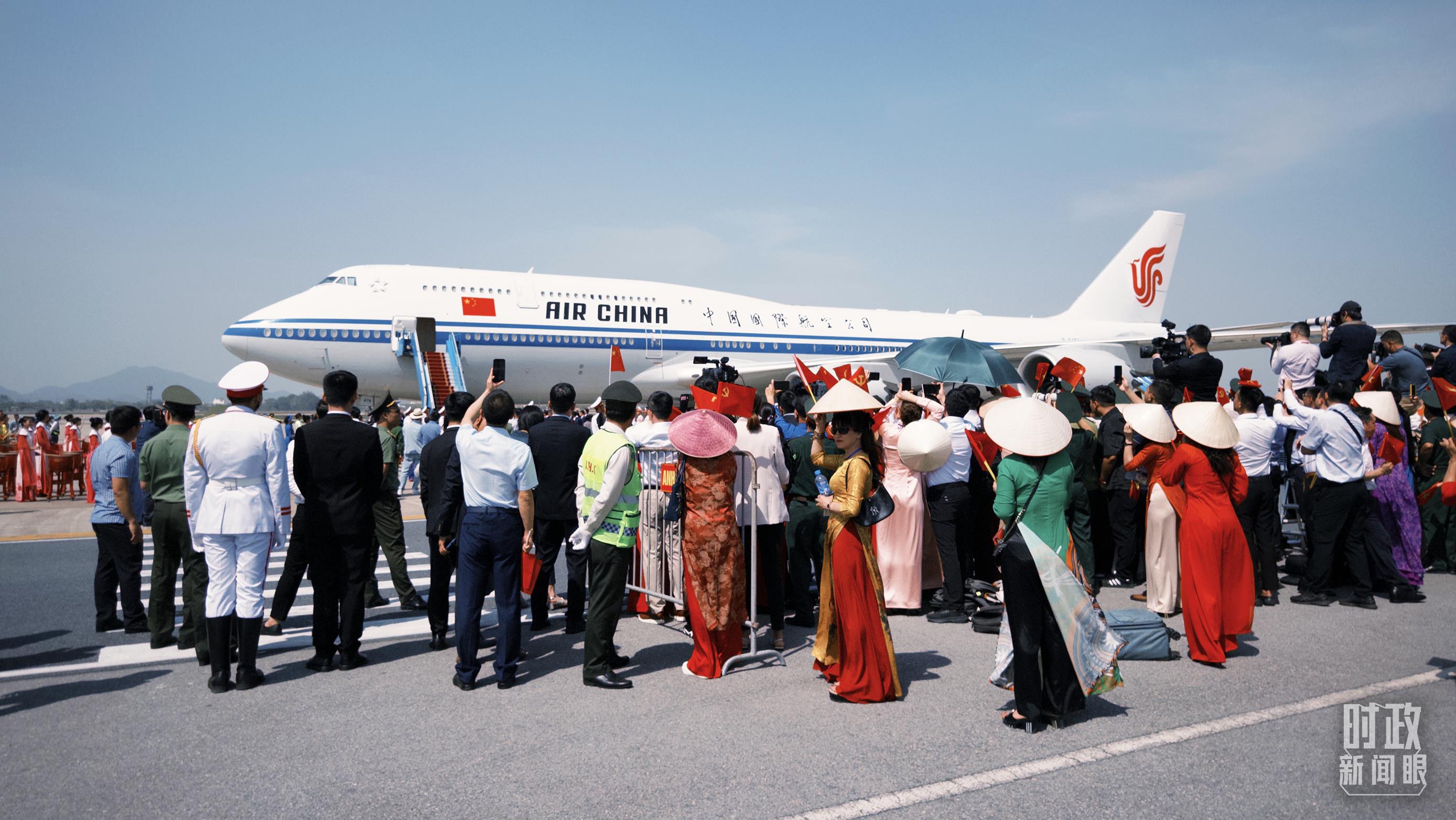 越南民眾到機(jī)場(chǎng)送行。(總臺(tái)央視記者蔣碩拍攝)